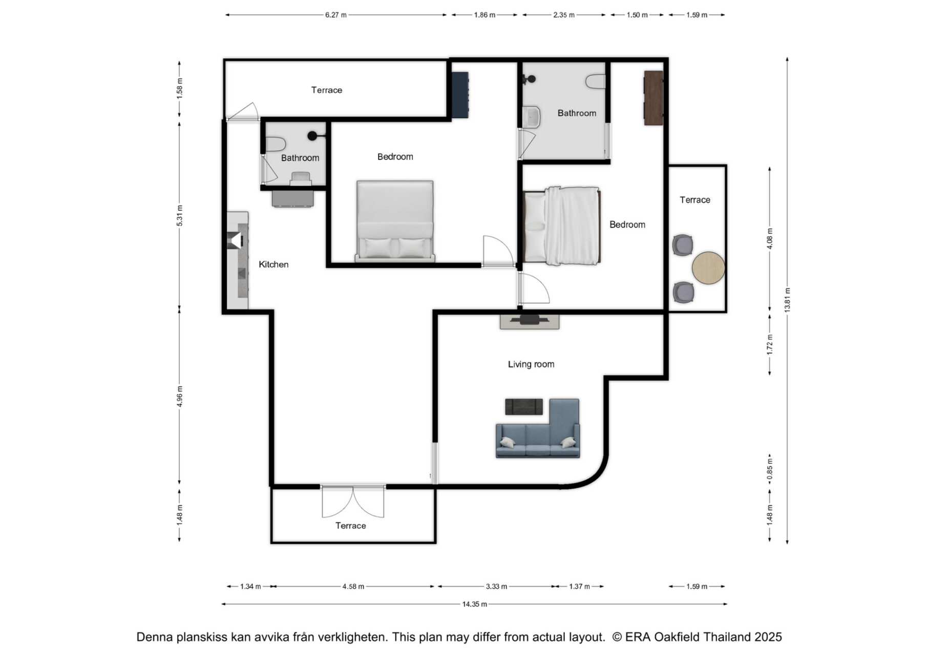2 bedrooms | 2 bathrooms | 1 kitchen